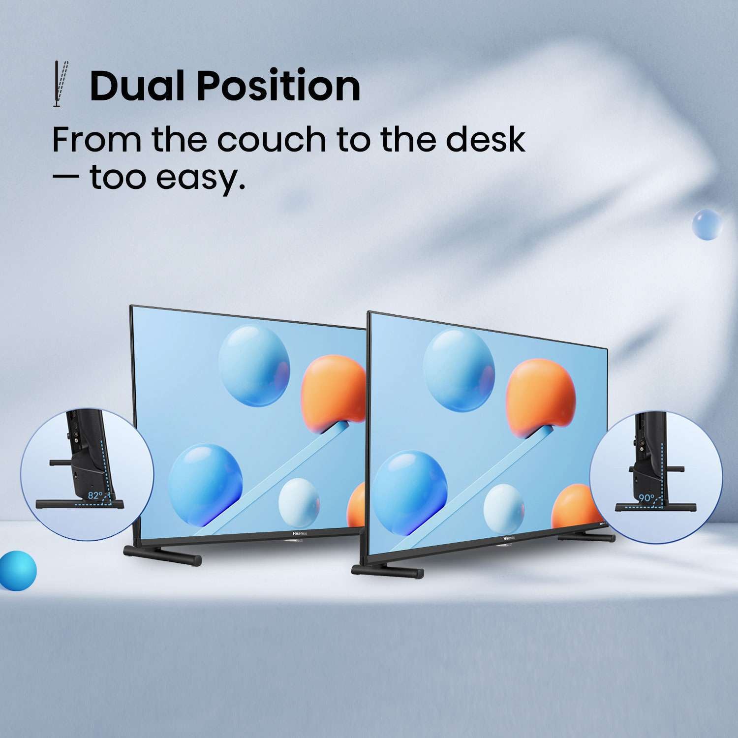From the couch to the desk — too easy.Dual PositionSit it upright for classic TV viewing, or tilt it back 8° for the perfect personal monitor. Ideal for both entertainment and your home office. |
