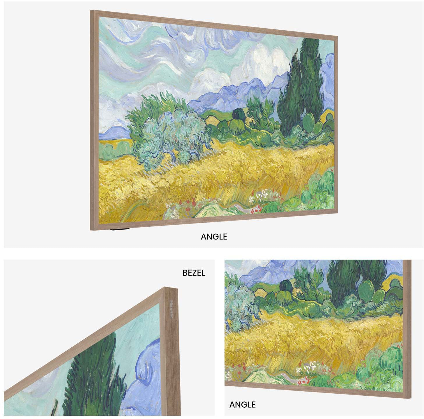 * Your TV comes with a premium Teak frame included in the box. For additional frame colour options, visit our website https://hisense.com.au/au/en/AUD/2024CanvastvPromoTcs for details.