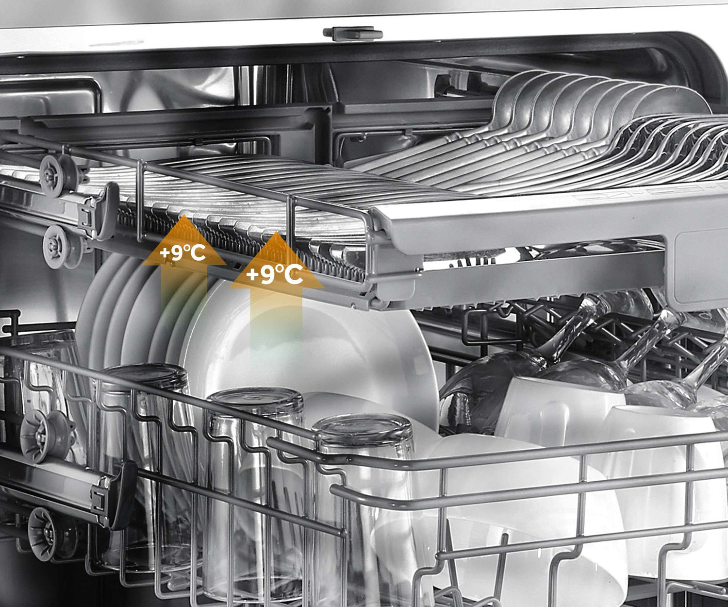 For more comprehensive drying resultsDry+For dishes that need that little bit extra. When this function is activated, the temperature during the last rinse cycle rises by 9°C to help dry your glass, ceramic and even plastic dishes. |