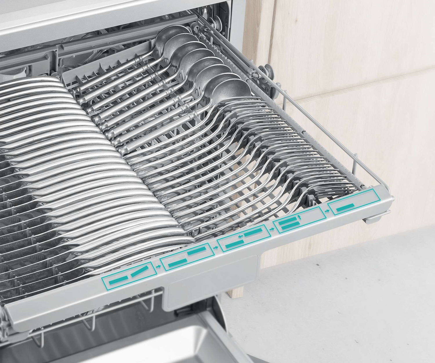 Treat your cutlery rightCollapsible Cutlery TrayThe third basket is in the upper part of the tub, which is designed for cutlery and cooking utensils to ensure the best washing and drying result. Designed for maximum flexibility, you can slide half of the tray over the other (or remove it completely) to provide more space for larger plates or dishes in the basket beneath. |