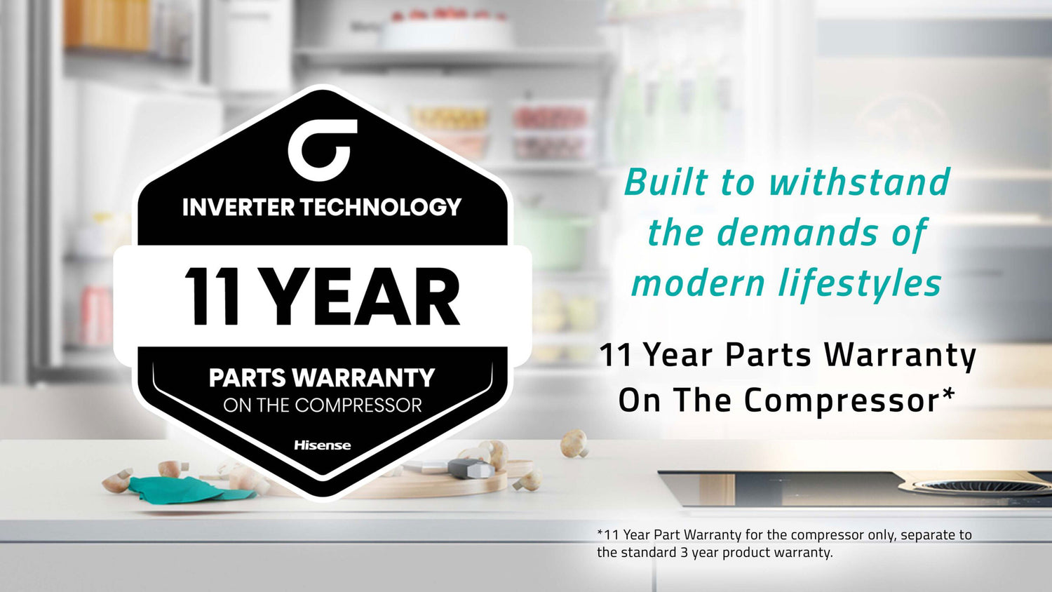 Built to withstand the demands of modern lifestyles3 Year Warranty & 11 Year Parts Warranty On The CompressorHisense’s Inverter Technology always maintains an ideal temperature, resulting in everyday reliability for your family. That is why we offer a standard 3 Year Warranty with your fridge and also an 11 Year Parts Warranty on the Compressor. |