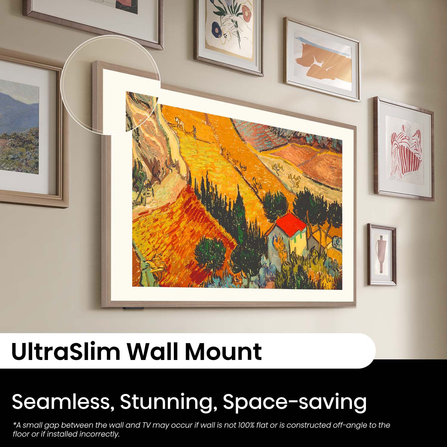 Seamless, Stunning, Space-savingUltraSlim Wall MountThis UltraSlim Wall Mount fits your TV snugly against the wall, saving precious space and giving it a sleek, picture-like appearance. It’s also lightweight, making it easy to install and manage. *A small gap between the wall and TV may occur if wall is not 100% flat or is constructed off-angle to the floor or if installed incorrectly. |