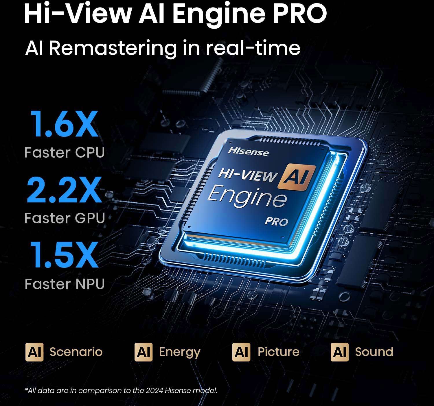 Meet Hi-View AI Engine PRO - a master at making every scene pop! It picks up on every detail, from skin tones to depth and graphics, delivering vibrant, true-to-life visuals. Even the simplest scenes become a masterpiece!