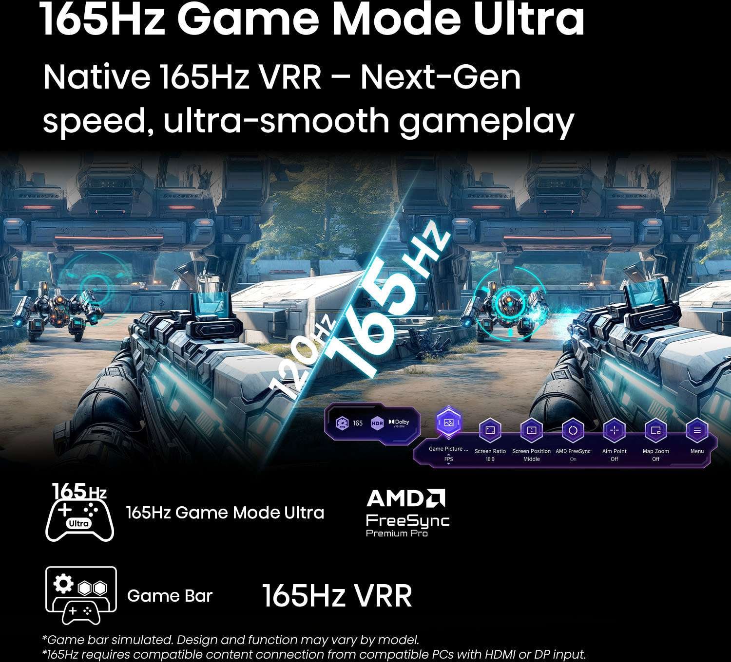 * 165Hz requires compatible content connection from compatible PCs with HDMI or DP input.