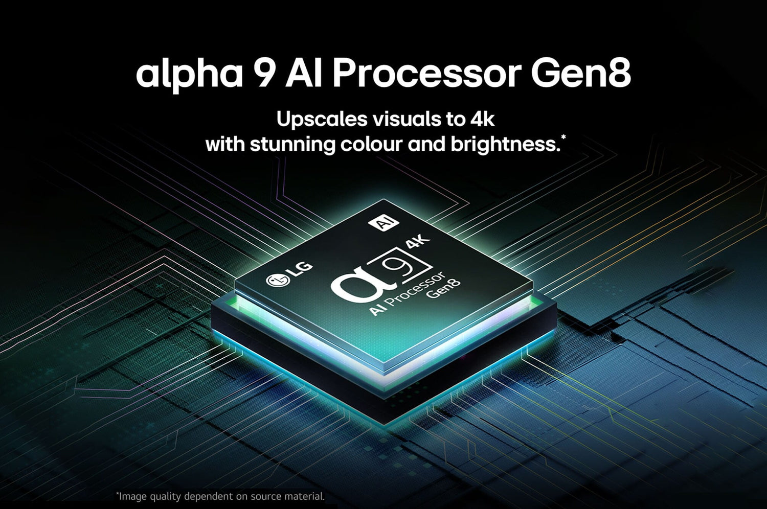 Features✓ Optimised AI picture and sound powered by the alpha 9 AI Processor 4K Gen 8. ✓ Incredibly realistic visuals with Perfect Black & Accurate Colour. ✓ An immersive cinema experience with Dolby Vision & Dolby Atmos. ✓ webOS smart features, including AI Search, AI Picture Wizard, Google Cast & Apple AirPlay 2. ✓ Ultra Slim Design with incredibly narrow bezels. ✓ Advanced gameplay with NVIDIA G-Sync, AMD FreeSync Premium, XBOX & NVIDIA GeForce Now cloud gaming.