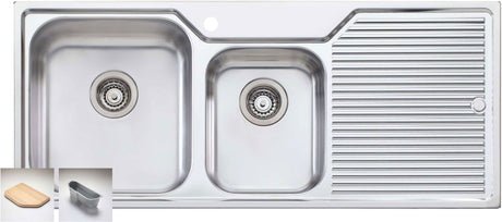 In stock (1000 units)Oliveri 1 & 3/4 Double Left Hand Bowl Inset Sink With Drainer PR1111