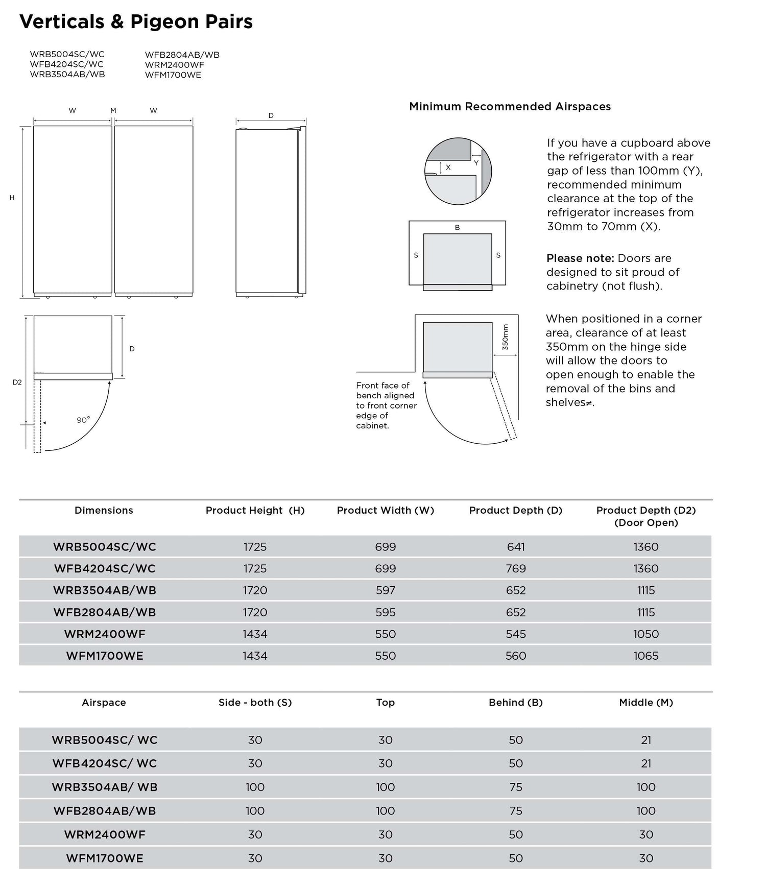 Westinghouse's vertical fridges and freezers can be combined in one space to give you a pigeon pair. This provides you with the maximum fresh food and freezer storage in one unit- truly the big fridge for the big family